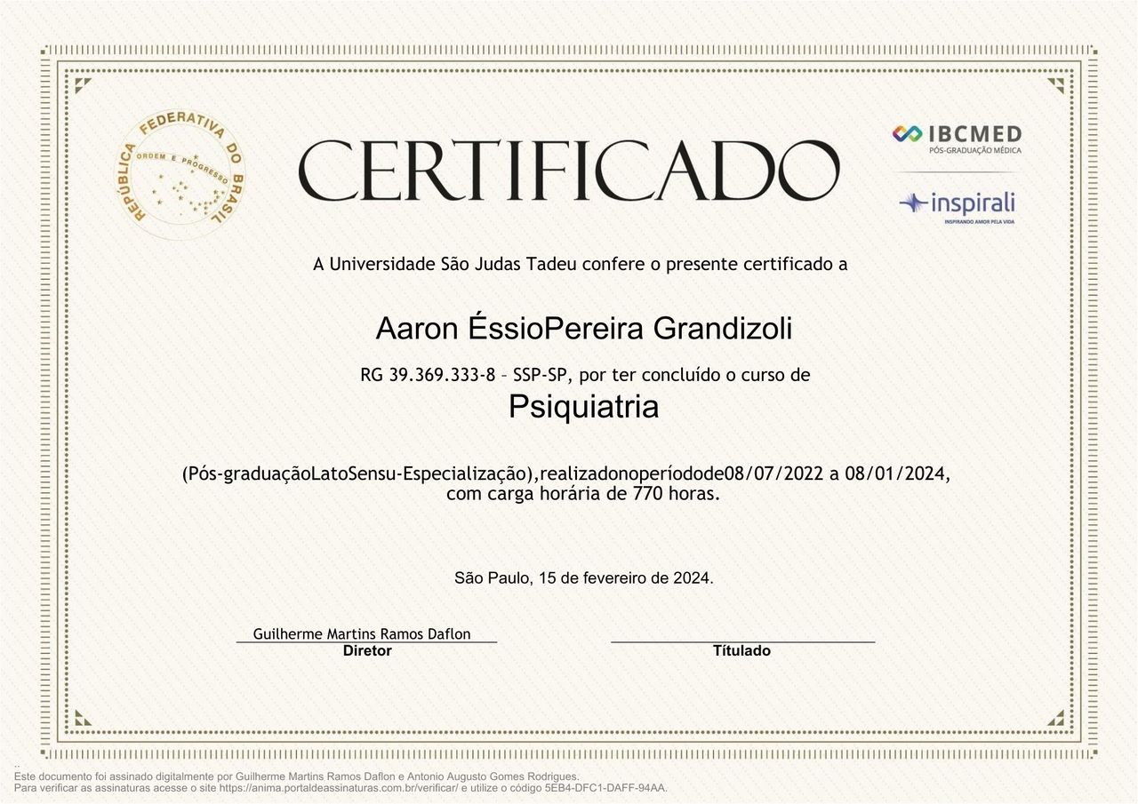 • Dr. Aaron Grandizoli - ATENDIMENTO ONLINE • Primeira consulta Psiquiatria •