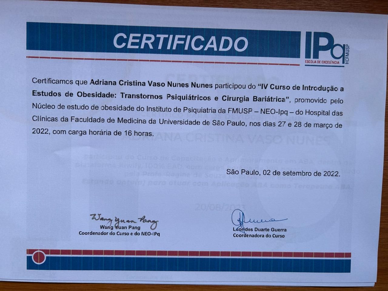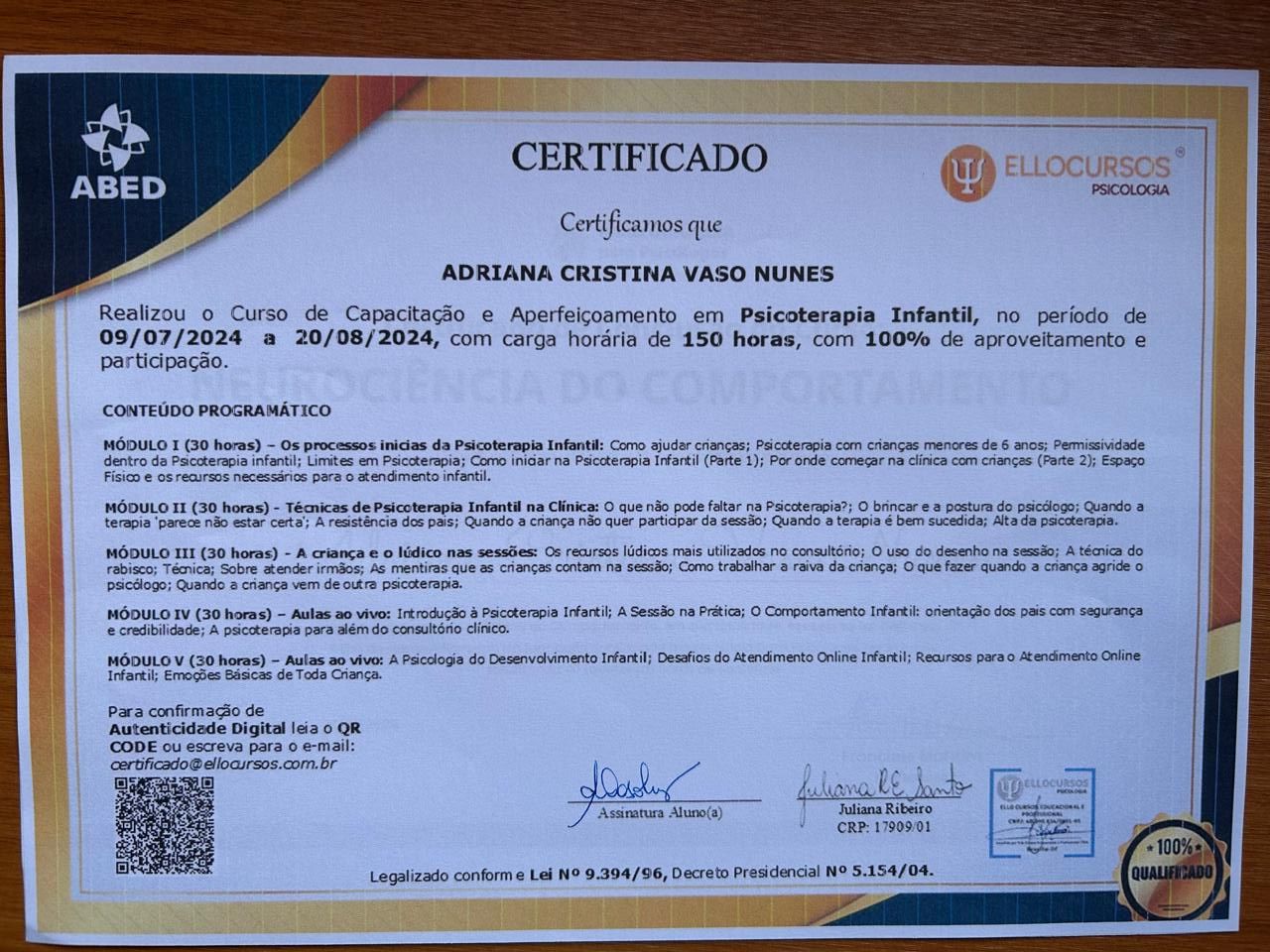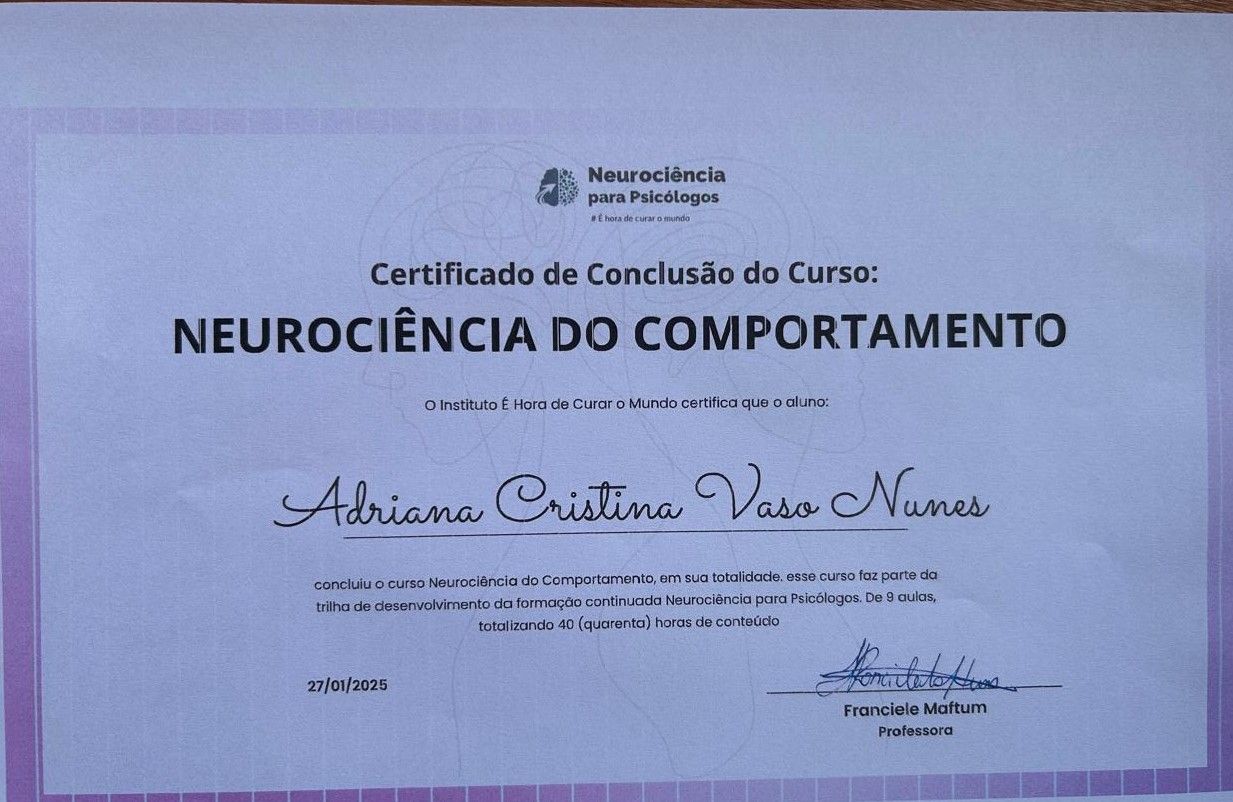 Recomendo de olhos fechados!• Adriana Cristina Vaso Nunes • Primeira consulta psicologia •