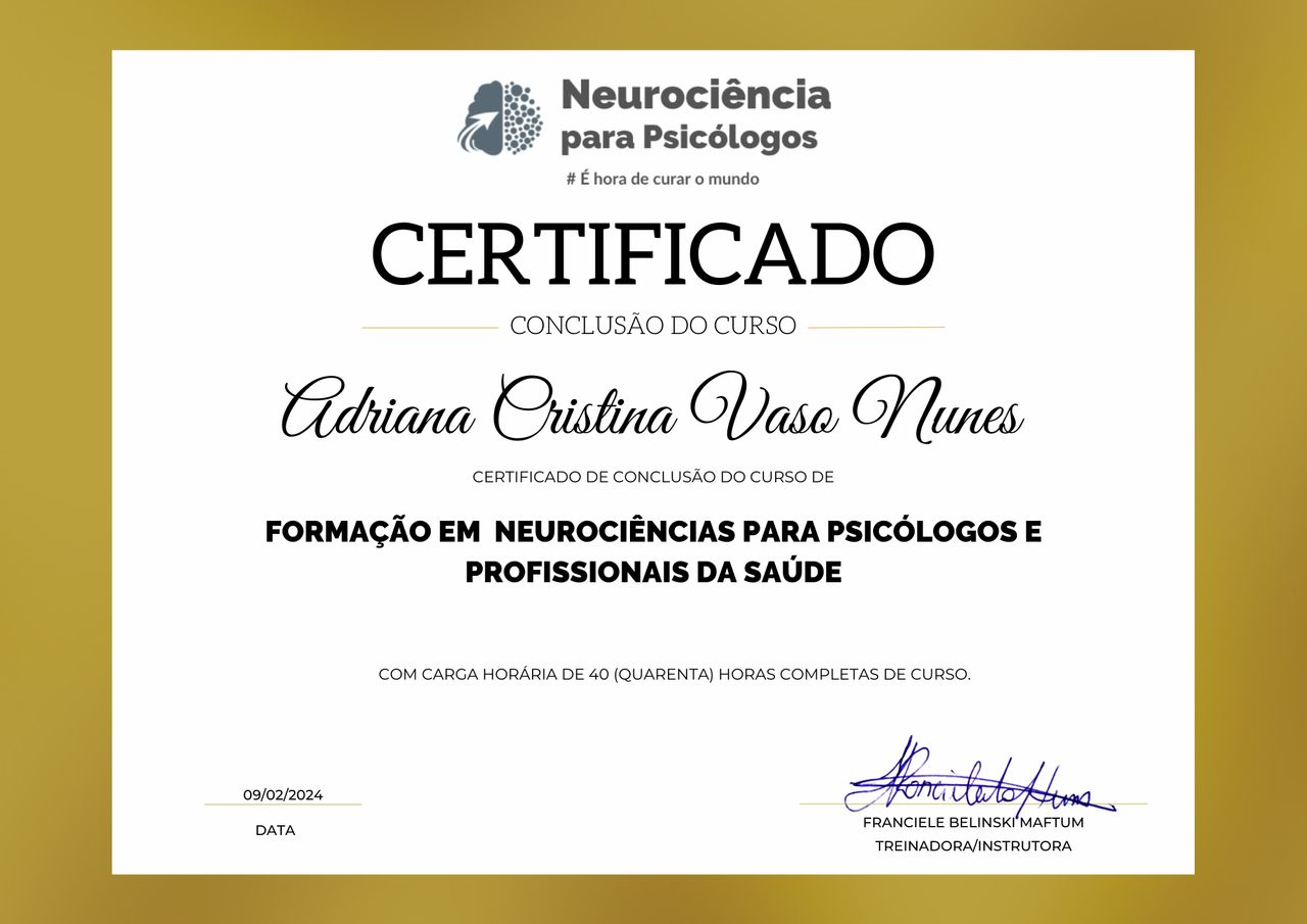 Sou muito grata por ter encontrado uma profissional tão humana e competente como a Adriana. Indico de olhos fechados, com todo carinho.• Adriana Cristina Vaso Nunes • Outro •
