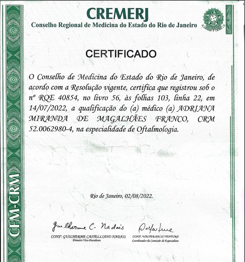 Número de registro: CRM RJ 629804 - RQE Nº: 40854