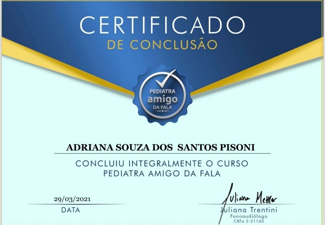 Quais são as principais especialidades de Adriana Souza Dos Santos Pisoni?Adriana Souza Dos Santos Pisoni é pediatra. Te mostramos alguns dos serviços oferecidos pelo especialista graças à sua trajetória e vasta experiência: Consulta Pediatria, Consulta de urgência, Retorno de consultas Pediatria, Consulta pediátrica pré-natal, Teleconsulta, Consulta Pediátrica Domiciliar.