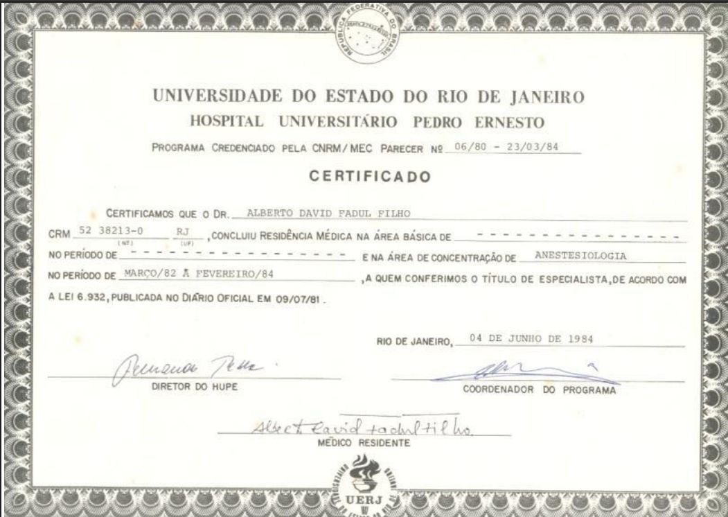 Supervisor do Programa de Residência Médica em Anestesiologia do Hospital Universitário Evangélico Mackenzie