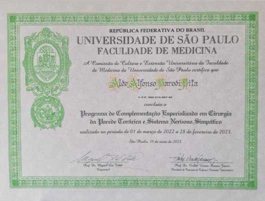 Quais são as principais especialidades de Aldo Parodi Pita?Aldo Parodi Pita é cirurgião torácico. Te mostramos alguns dos serviços oferecidos pelo especialista graças à sua trajetória e vasta experiência: Primeira consulta Cirurgia Torácica, Acompanhamento de nódulo pulmonar, Correção de Pectus excavatum - Cirurgia de Nuss, Simpatectomia, Teleconsulta.