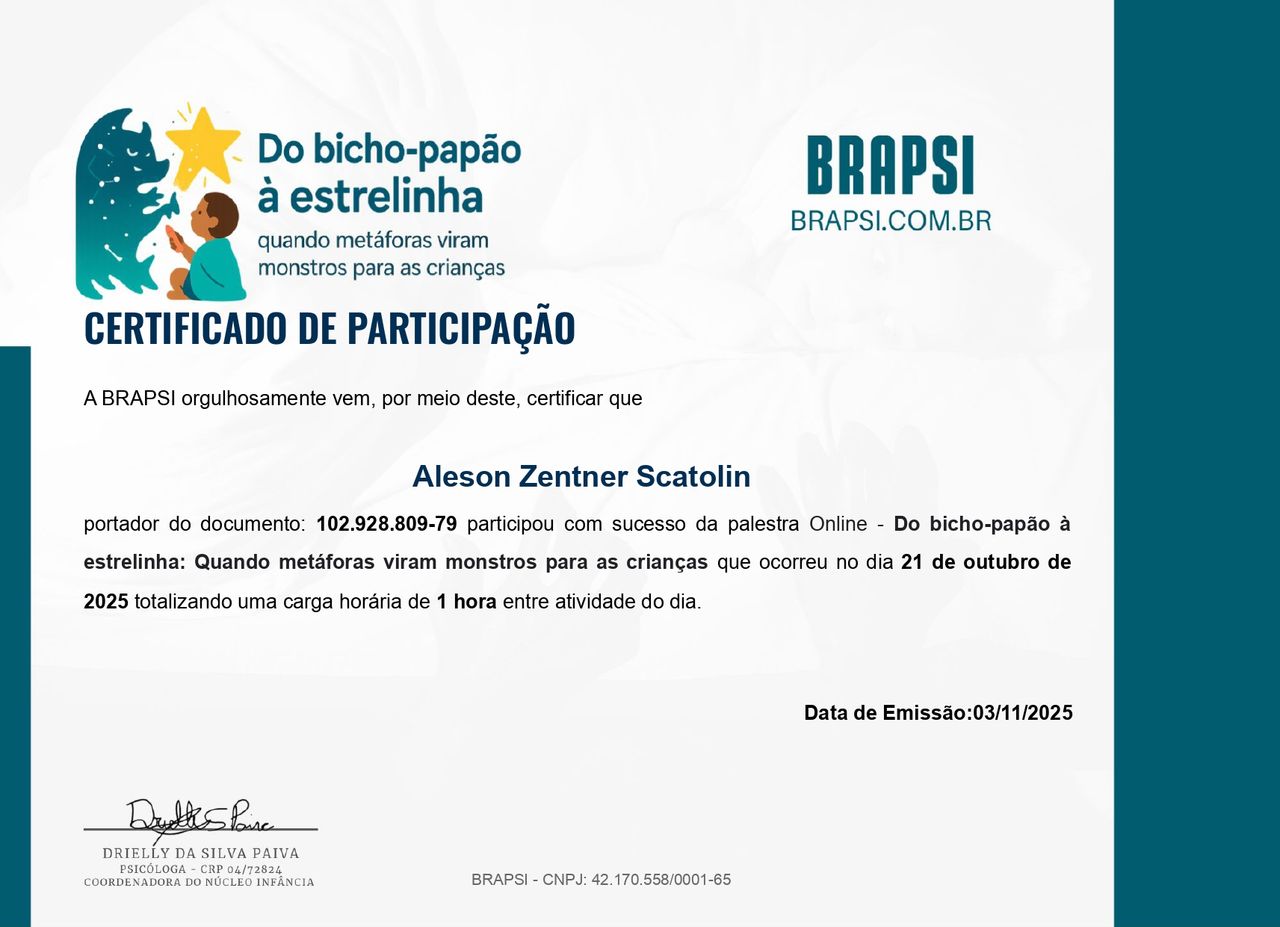 Por hora, iremos ter mais um bate papo para análise, mas adianto que gostei bastante• Consultório de Psicologia - Aleson Z Scatolin • Consulta psicológica •