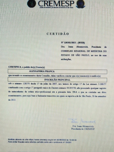 Com a telemedicina, a Dra. Alessandra França oferece atendimento médico online em Cardiologia, Clínica Médica, Emagrecimento Saudável e Terapia Fitocanabinoide, com o mesmo cuidado, atenção e tempo de qualidade das consultas presenciais.