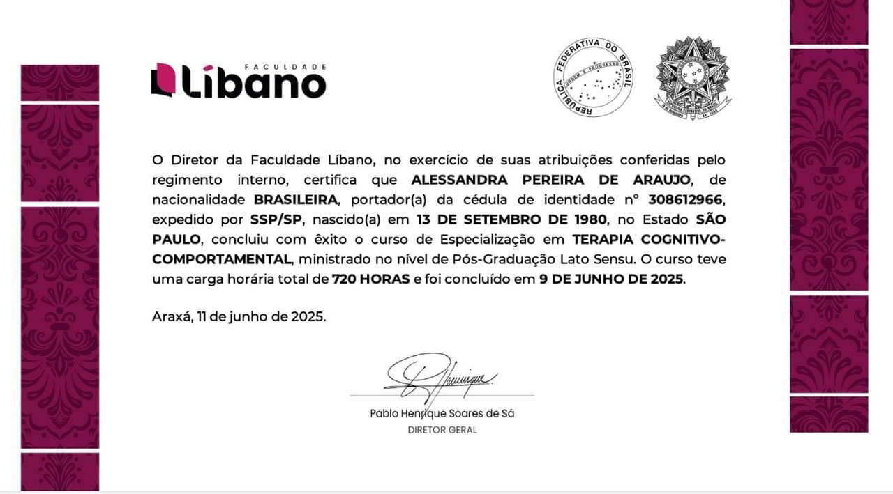 Com foco no desenvolvimento humano integral, busca constantemente aprimorar sua prática profissional por meio de formações continuadas, garantindo excelência técnica e compromisso com o cuidado psicológico de qualidade.