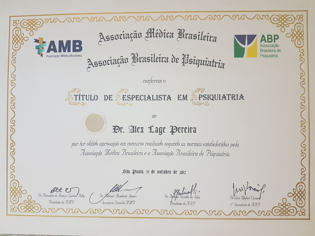 Título de Especialista em Psiquiatria pela Associação Brasileira de Psiquiatria (ABP/AMP)