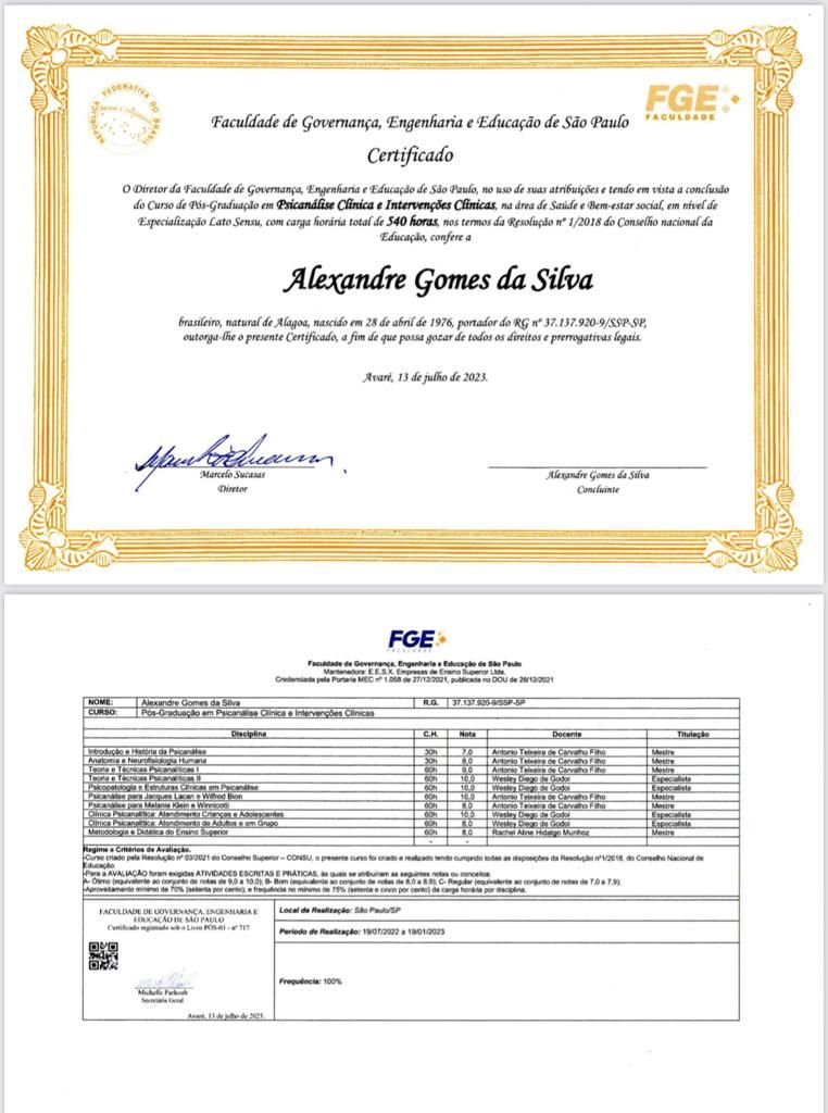 Há mais de 10 anos atuo no atendimento clínico como Psicanalista e não satisfeito me graduei em Psicologia e fundei a Psique Integra que é um espaço de transformação pessoal da combinação de minhas três formações básicas: Filosofia, Psicanálise e Psicologia e algumas pós-graduações na área. Essas formações me proporcionam ferramentas importantes para intervenções mais profundas e multifacetadas, que tocam não só a mente, mas também o sentido existencial de quem busca respostas para suas demandas e renovação em seus pensamentos e porque não dizer: meios de curar as feridas da alma.