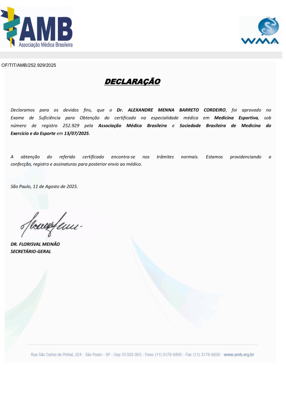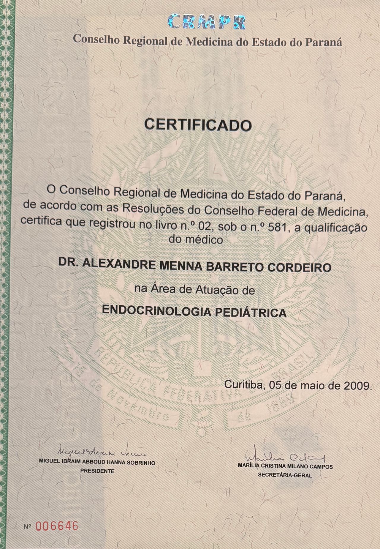 Número de registro: CRM PR 20775 RQE Nº: 16037 RQE PARA MÉDICO DO ESPORTE 37703 Endocrinologia Pediátrica RQE: 581