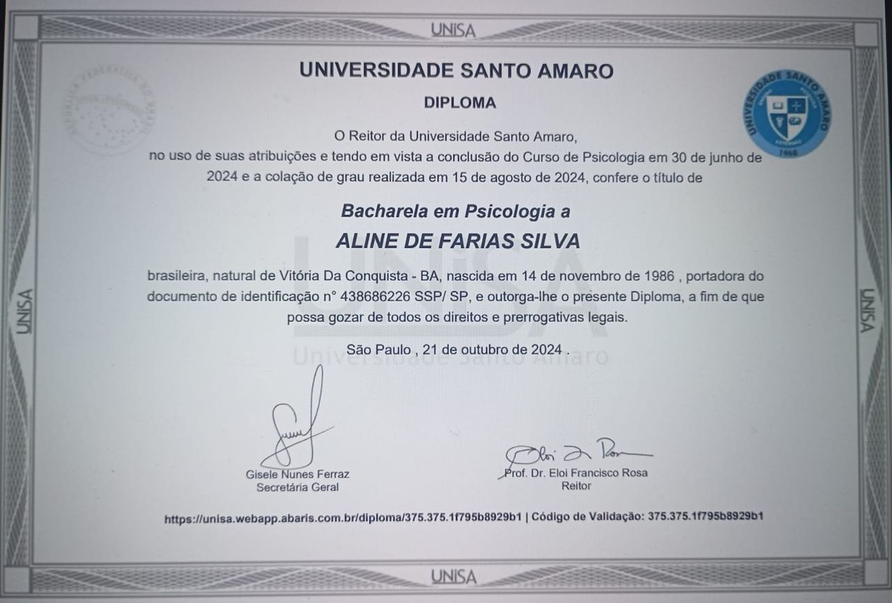 Atuo com adultos e idosos, e ao longo da minha trajetória, tive a oportunidade de ajudar pessoas que enfrentam conflitos nos relacionamentos, desafios profissionais, situações de violência, maternidade solo, entre outras questões. Reconheço que cada pessoa é única, por isso quero estar presente para apoiar sua reflexão e transformação pessoal.
