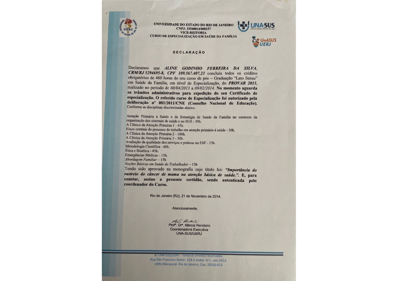 Ótima profissional, experiente, bem instruída, cuidadosa e humana. A dr. Aline foi um achado, minha saúde melhorou muito desde o início de nossas consultas.