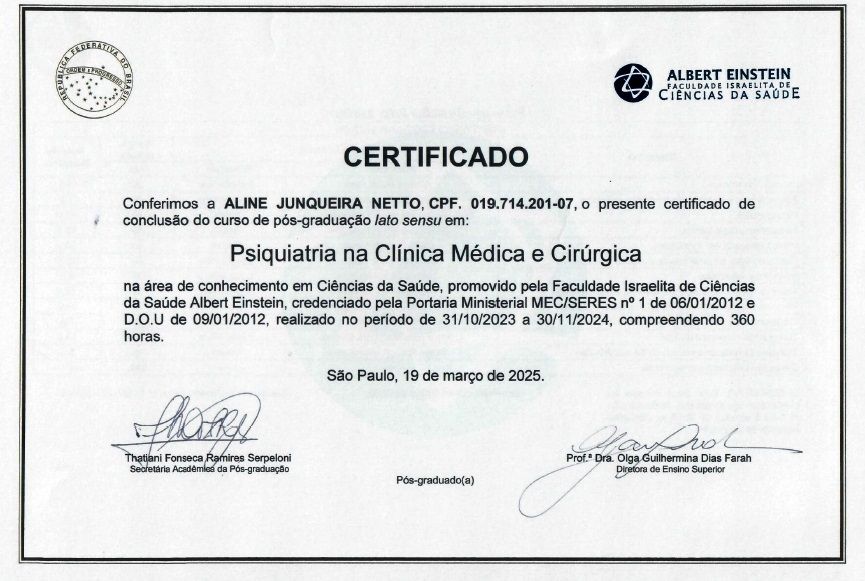 Pós Graduação Psiquiatria Hospital Albert EinsteinPrescrições Digitais, Receitas Amarelas e AzuisAbordagem empática, cuidadosa e individualizada