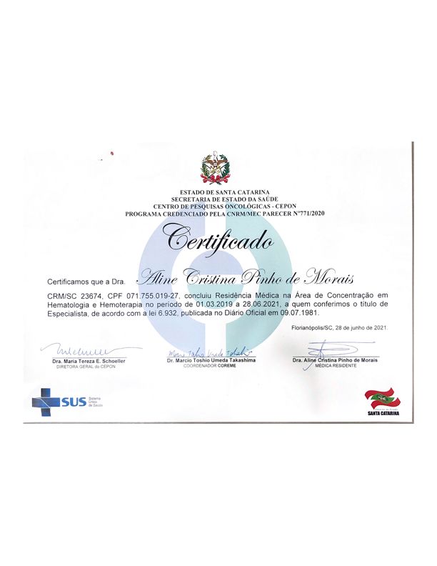 • Hospital da Unimed Grande Florianópolis • Consulta Hematologia e Hemoterapia •