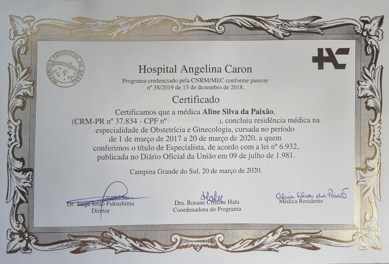 Quais são as principais especialidades de Aline Paixão?Aline Paixão é ginecologista. Te mostramos alguns dos serviços oferecidos pelo especialista graças à sua trajetória e vasta experiência: Primeira consulta ginecologia e obstetrícia, Retirada do DIU, Inserção do DIU de cobre, Inserção do DIU hormonal, Pré natal de alto risco, Consulta pré natal, Consulta ginecologia, Teleconsulta, Consulta de Pré-Natal, Implante hormonal contraceptivo.