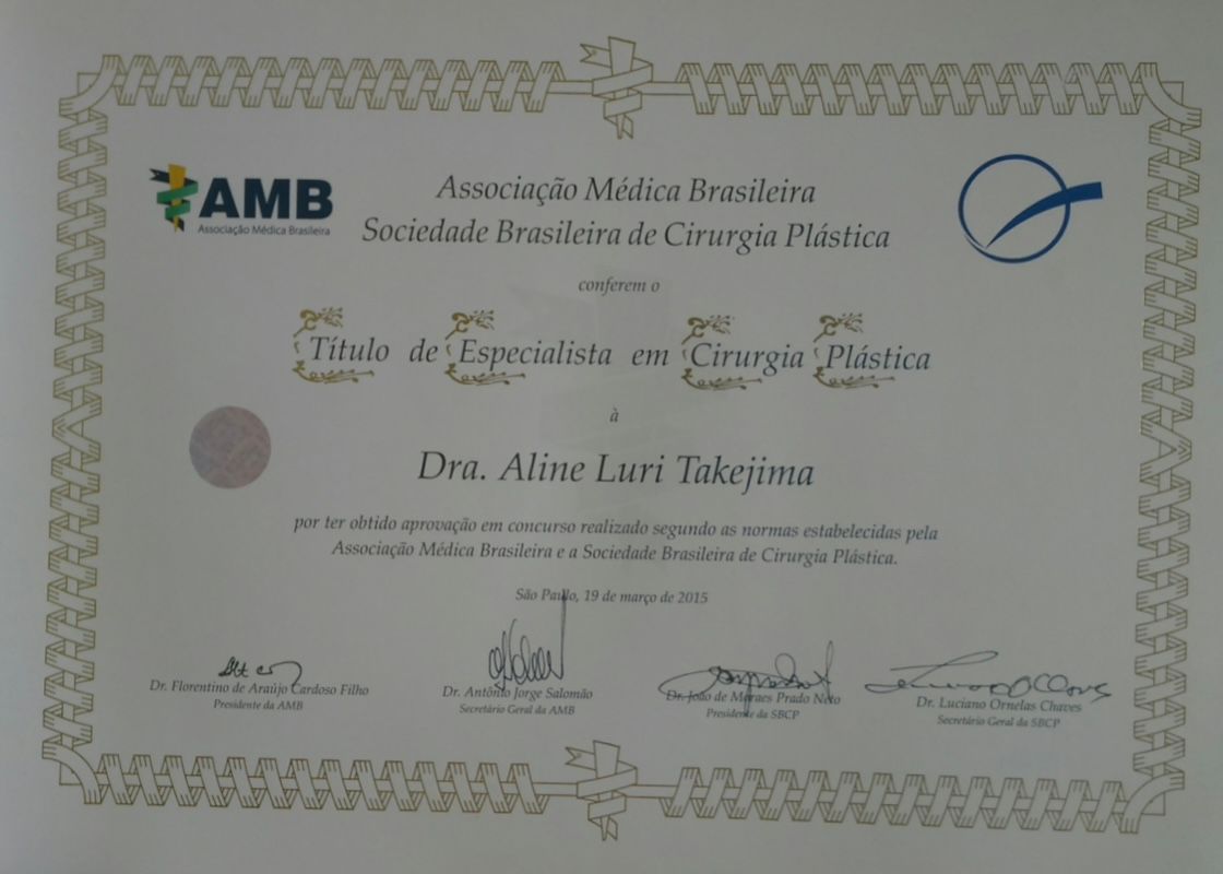 Quais são as principais especialidades de Aline Takejima?Aline Takejima é cirurgiã plástica. Te mostramos alguns dos serviços oferecidos pelo especialista graças à sua trajetória e vasta experiência: Primeira consulta Cirurgia Plástica, Abdominoplastia, Lipoaspiração, Mamoplastia de Aumento, Mamoplastia Redutora, Lipoescultura corporal, Retorno de consultas Cirurgia Plástica, Retorno Pós-operatório, Consulta Cirurgia Plástica, Procedimentos.