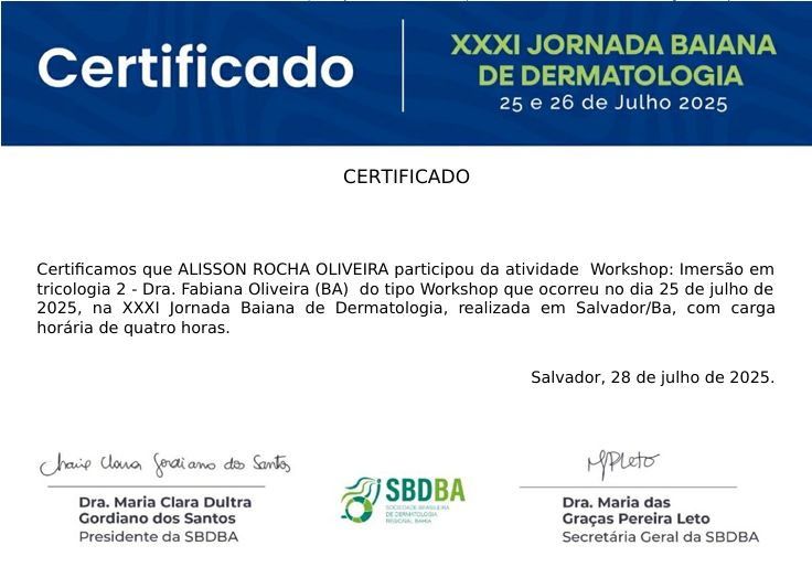 Médico formado pela Universidade Federal de Sergipe, residência médica em Dermatologia pela Universidade Federal da Bahia.