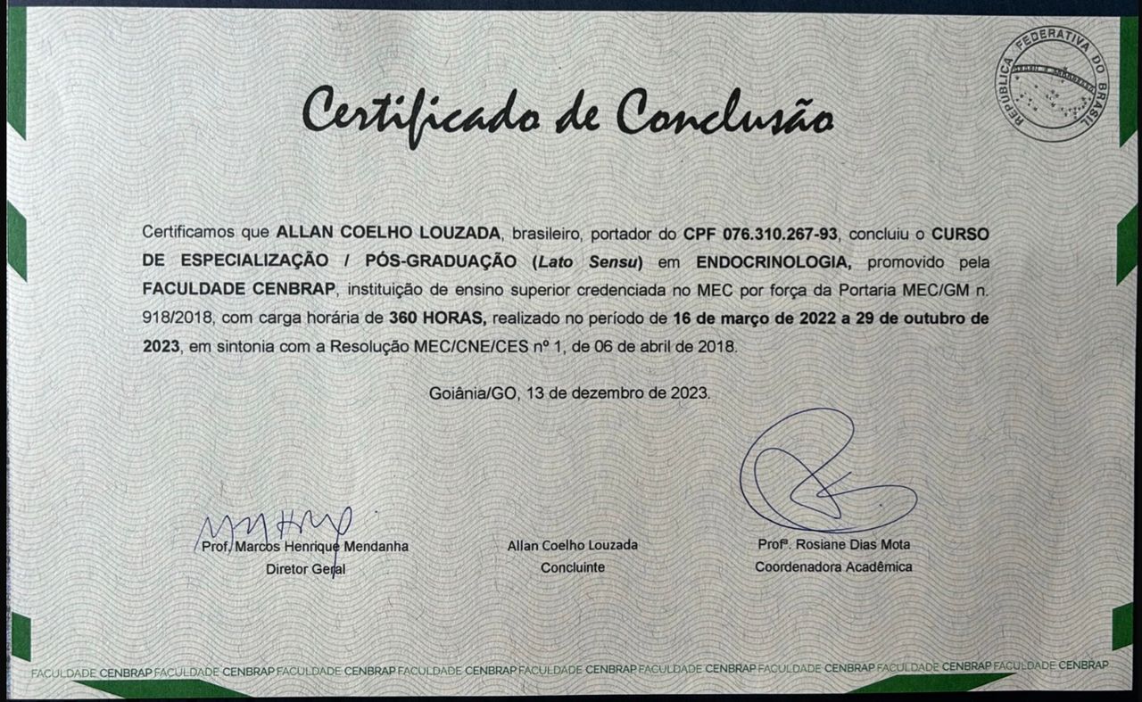 Quais são as principais especialidades de Allan Louzada?Allan Louzada é endocrinologista. Te mostramos alguns dos serviços oferecidos pelo especialista graças à sua trajetória e vasta experiência: Teleconsulta, Primeira consulta Endocrinologia e Metabologia.