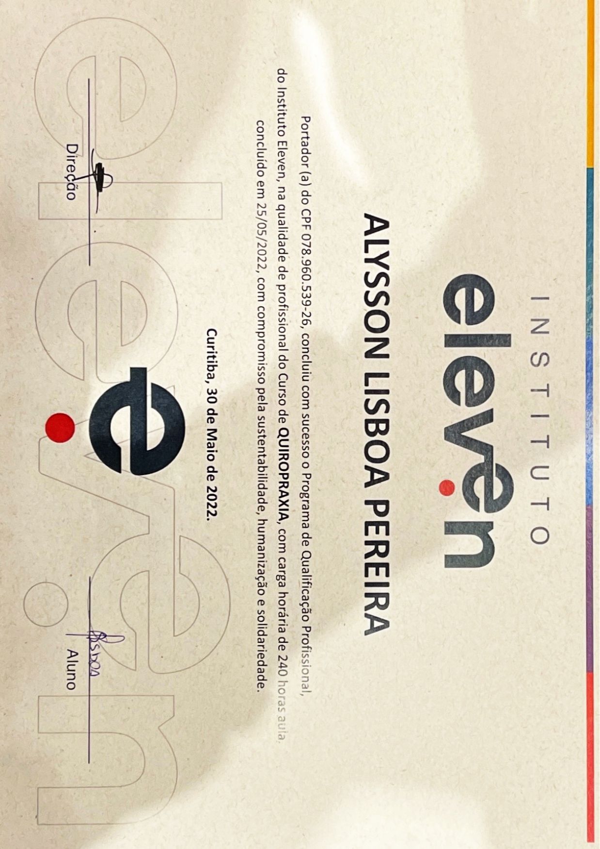Sou Alysson Pereira, Quiropraxista e Educador físico com atuação em Curitiba. Meu trabalho é voltado para um atendimento individualizado, com foco na recuperação funcional e na qualidade de vida de cada paciente. Desenvolvi uma metodologia exclusiva que tem ajudado muitas pessoas a evitarem cirurgias, com resultados comprovados na prática clínica e avaliações 5,0 no Google especialmente em casos de hérnia de disco, escoliose severa, lombalgia, ciatalgia, tendinopatias e fibromialgia.