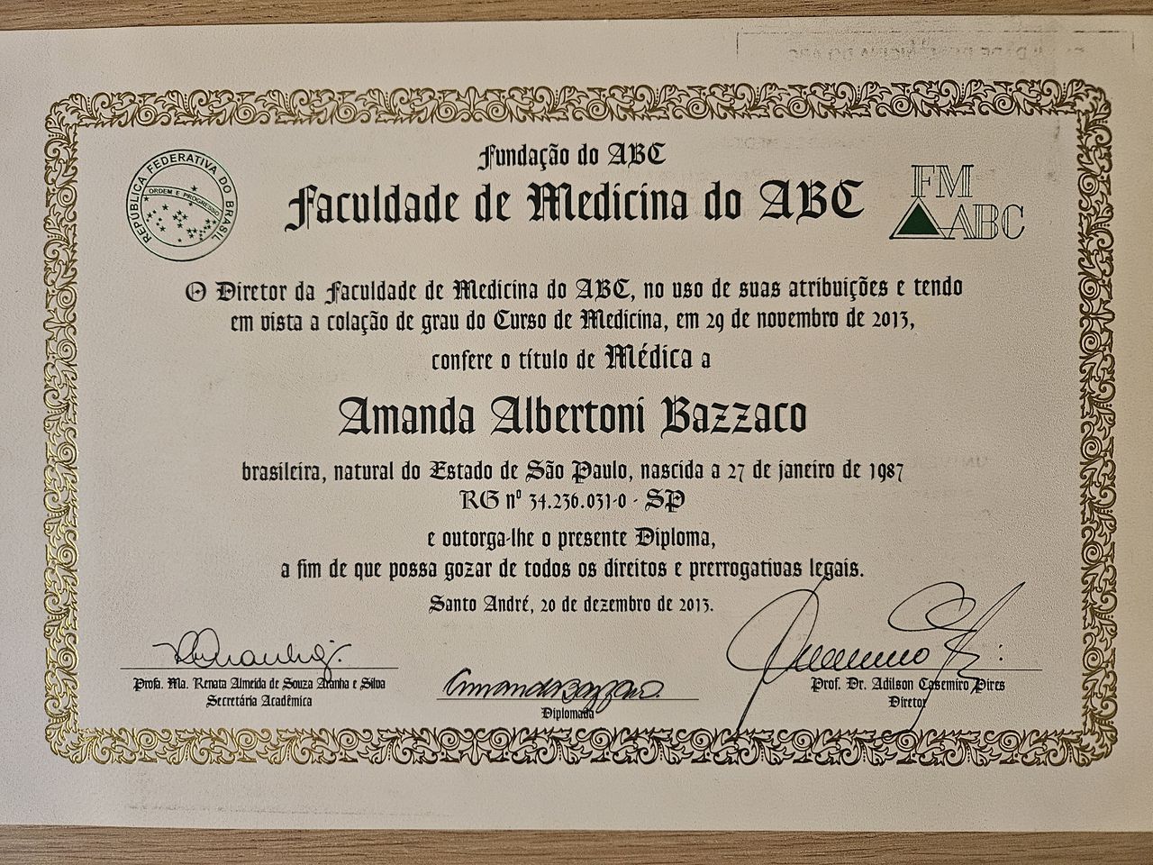 Formação médica e especialização pela Faculdade de Medicina do ABC