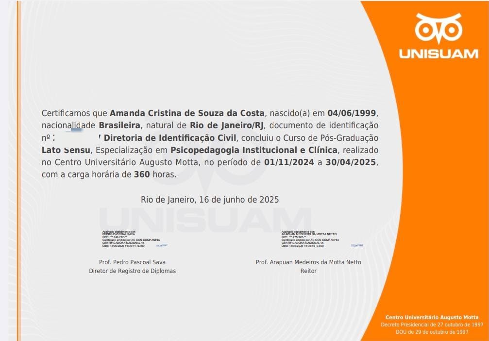 Caso você tenha alguma dúvida complementar sobre atendimentos, funcionamento da psicoterapia ou avaliação psicológica, fico à disposição para esclarecimentos.