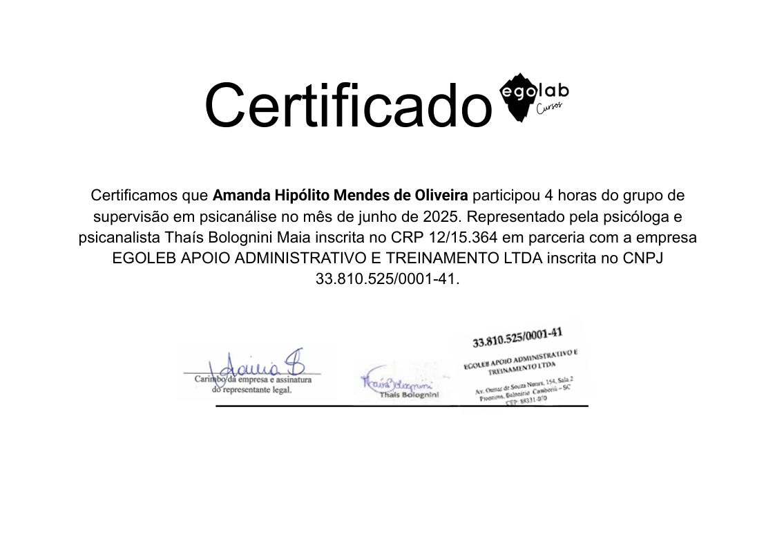 Sinto que, aos poucos, estou construindo emoções mais equilibradas, e grande parte disso se deve ao vínculo que temos estabelecido e à forma respeitosa e sensível com que você conduz os atendimentos.