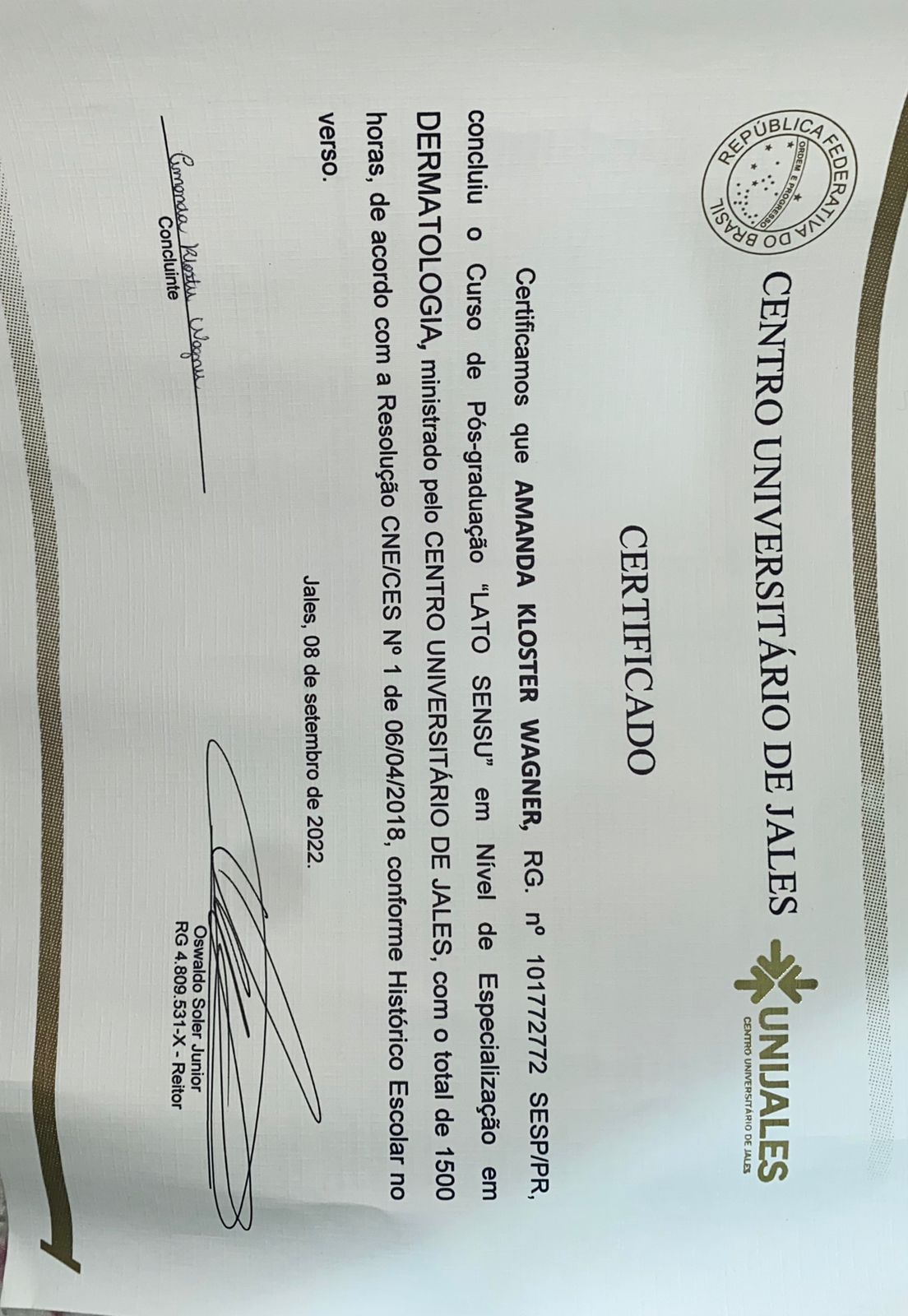Quais são as principais especialidades de Amanda Kloster Wagner?Amanda Kloster Wagner é dermatologista. Te mostramos alguns dos serviços oferecidos pelo especialista graças à sua trajetória e vasta experiência: Primeira consulta Dermatologia, Consulta Dermatologia.