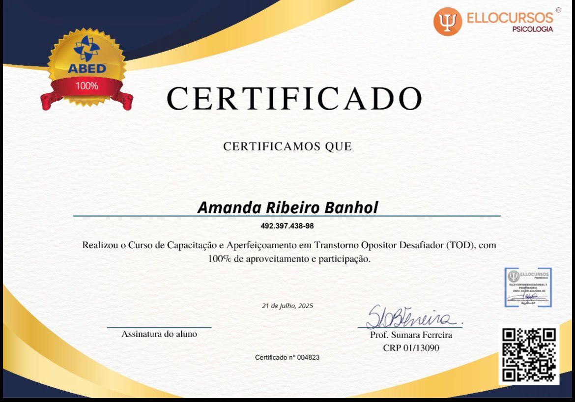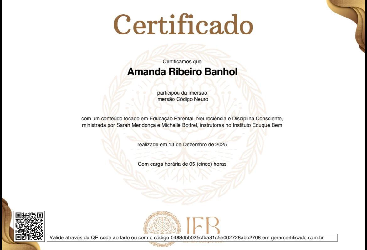 Também trabalho com orientação parental, auxiliando pais e responsáveis a compreender melhor o comportamento das crianças, fortalecer vínculos familiares e desenvolver estratégias mais saudáveis de educação e manejo das emoções no dia a dia.
