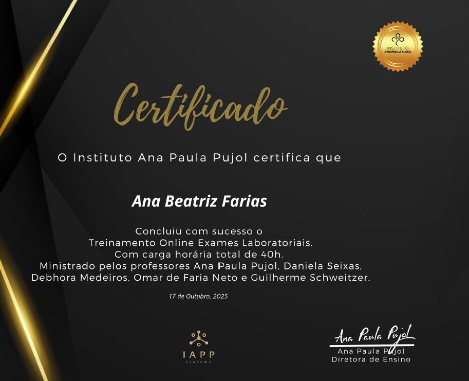 Posso passar por atendimento online com Ana Beatriz Farias, sem ter que ir até o consultório?Sim, Ana Beatriz Farias oferece atendimento online. Basta selecionar "Teleconsulta" ao agendar sua consulta e você poderá ver as datas e horários disponíveis.