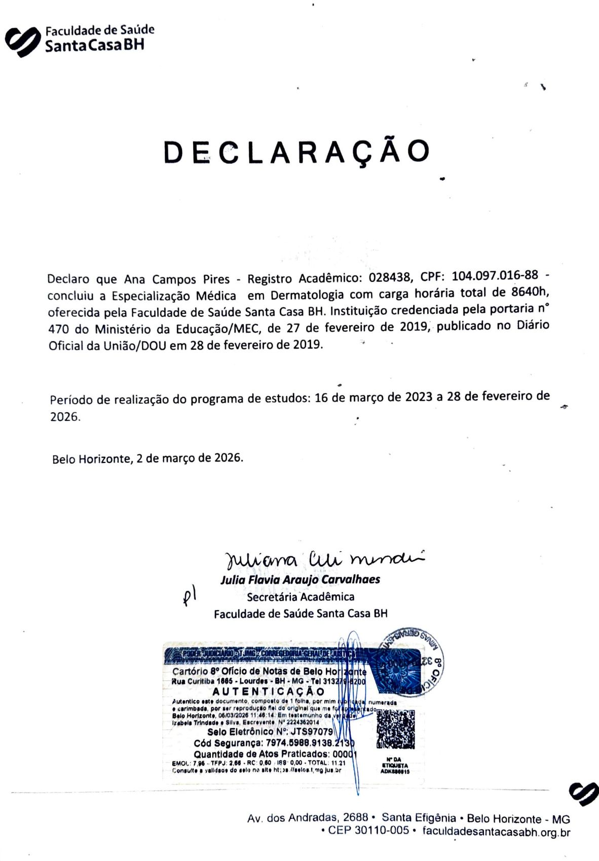18 opiniõesMédica pela Faculdade Ciências Médicas de Minas Gerais. Especialização médica em dermatologia pela Santa Casa de Belo Horizonte (serviço credenciado pela SBD).