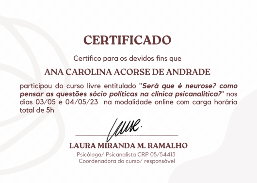 Me chamo Ana Carolina. Sou psicóloga clínica e hospitalar, pós graduada em psicologia hospitalar e pós graduando em cognitivo comportamental.