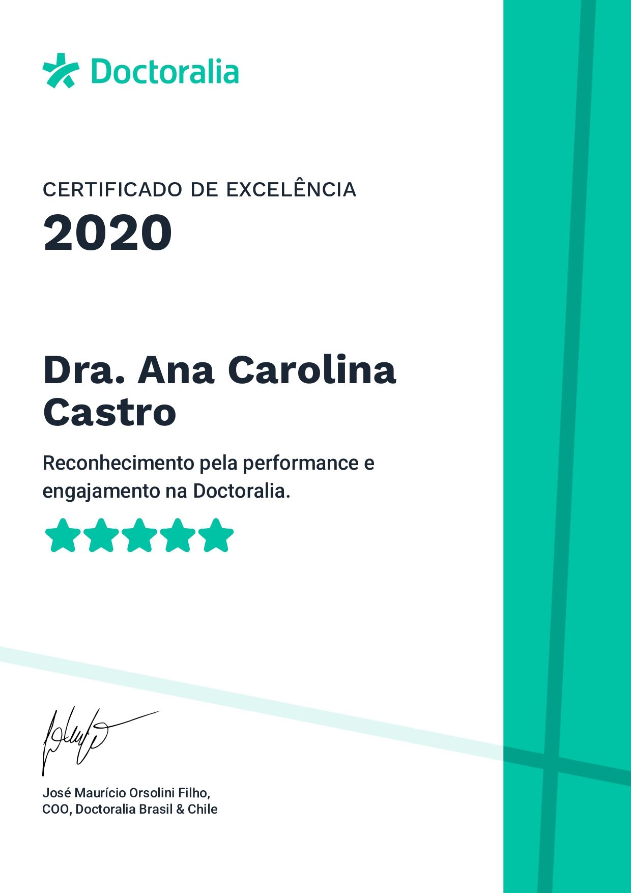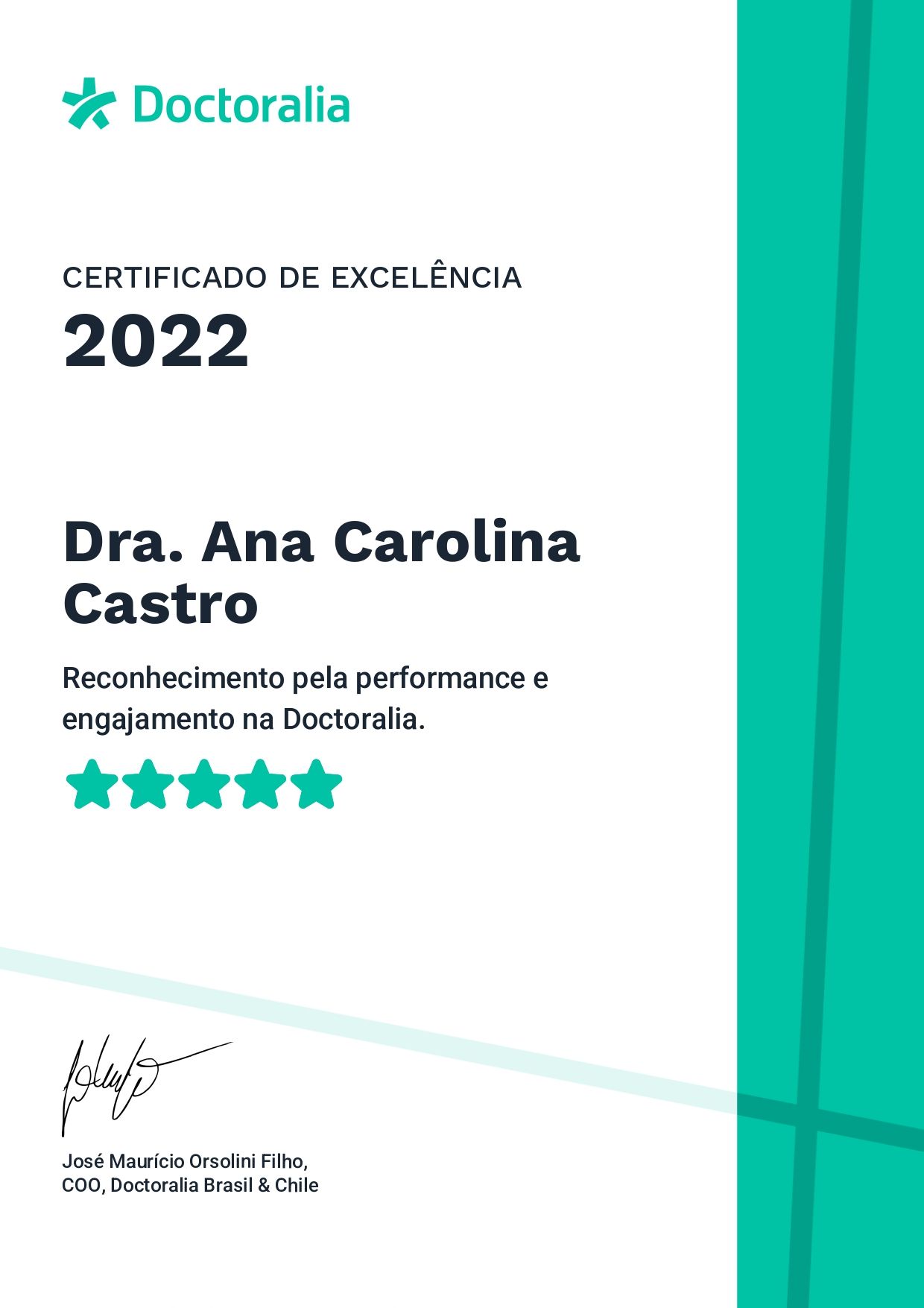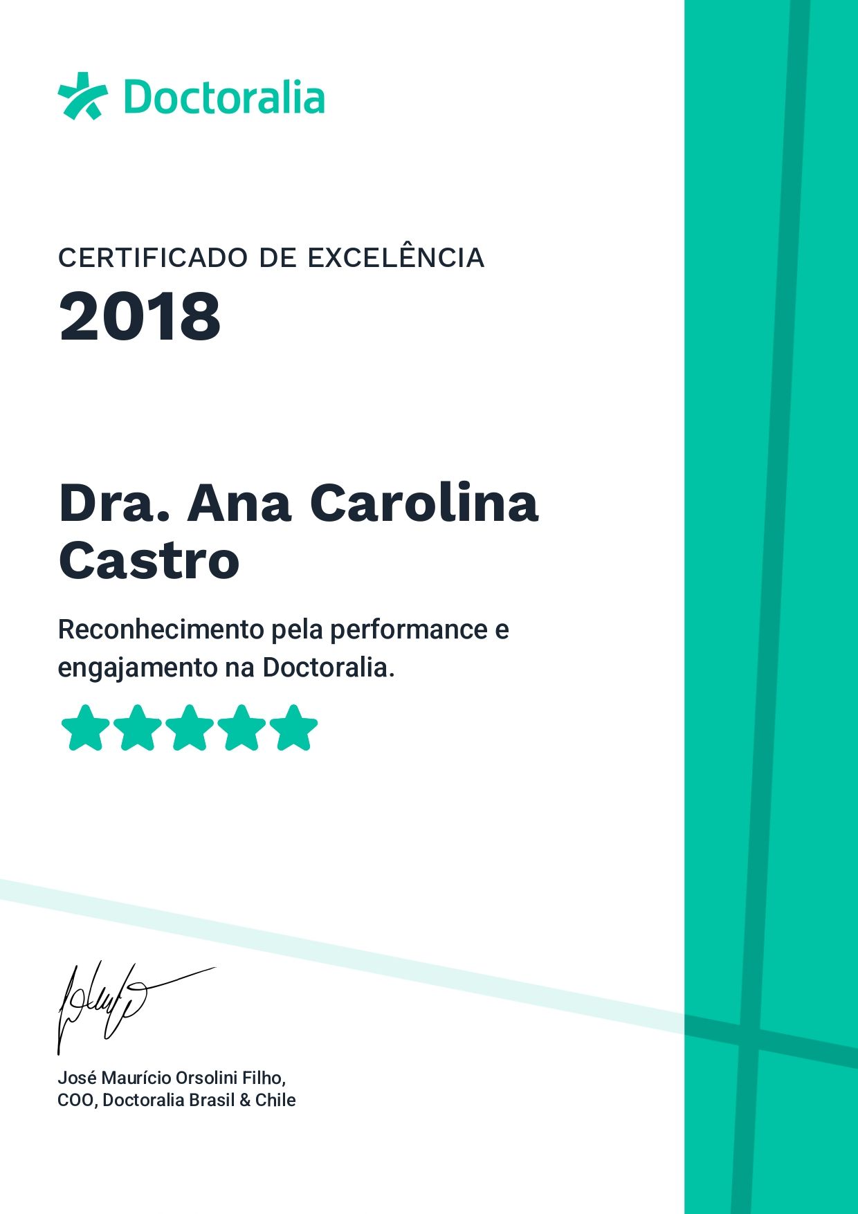 O que outros pacientes opinam sobre Ana Carolina Castro?Um total de 568 pacientes já deixou uma opinião honesta e real sobre Ana Carolina Castro, que tem uma avaliação média de 5 estrelas (de 5).