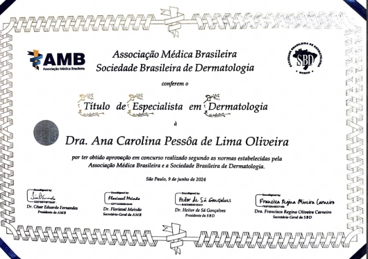 - Membro Titular da Sociedade Brasileira de Dermatologia;