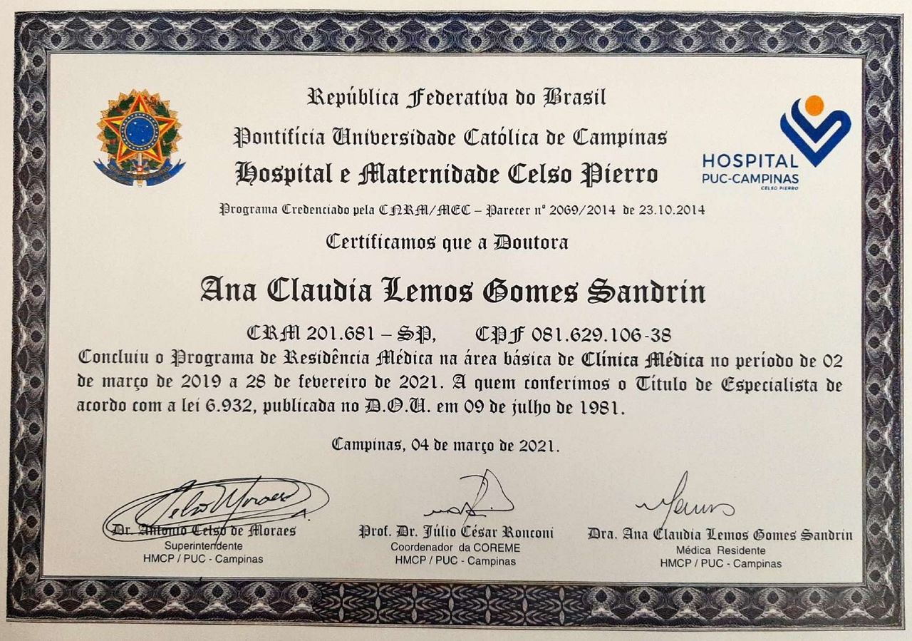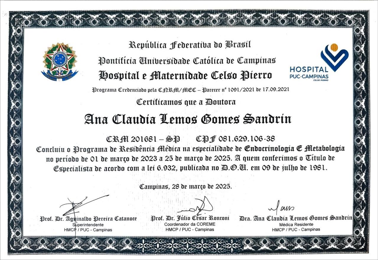 Sou Ana Cláudia, mineira, mas atualmente moro em Campinas, onde me formei em Medicina em 2018 pela Pontifícia Universidade Católica. No mesmo local concluí residência em Clínica Médica em 2021 e Endocrinologia e Metabologia em 2025.