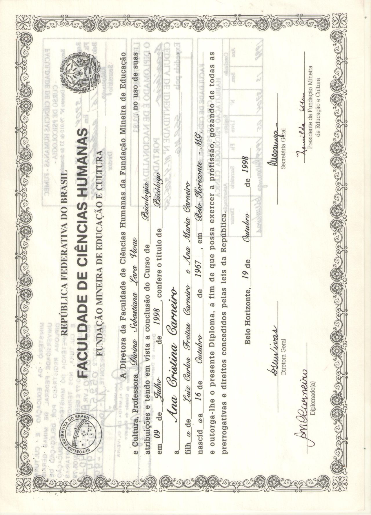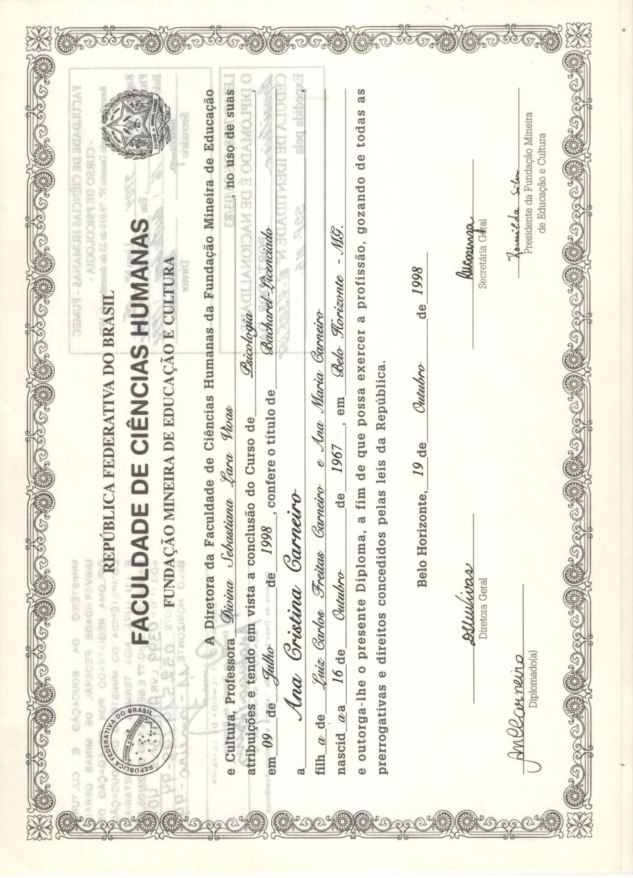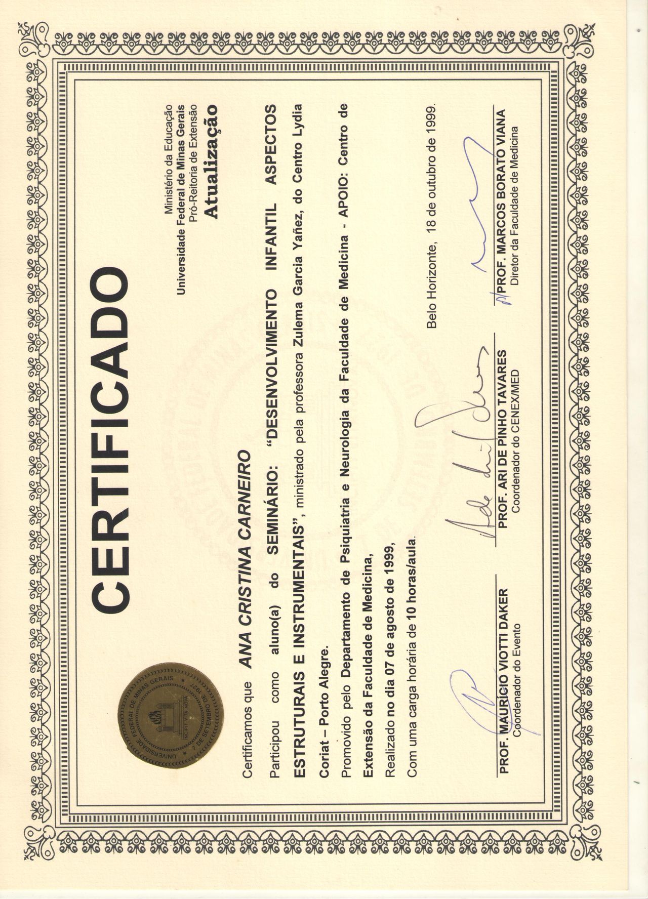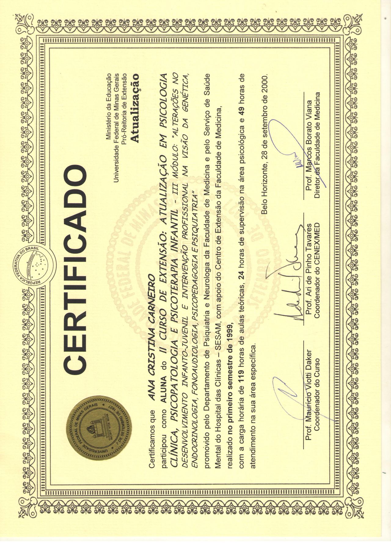Atualização em Psicologia Clinica, Psicopatologia e Psicoterapia Infantil pela UFMG.