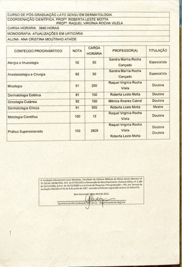 Quais são as principais especialidades de Ana Cristina Moutinho Ataide?Ana Cristina Moutinho Ataide é especialista em medicina estética. Te mostramos alguns dos serviços oferecidos pelo especialista graças à sua trajetória e vasta experiência: Dermarroller, Tratamento de psoríase, Eletro Coagulacao De Lesao Cutanea, Medical codes ou (MD codes), Cirurgia Do Xantelasma, Desencravamento de Pelos, Tricoscopia, Exérese de unha, Laser de Co2, Crioterapia.