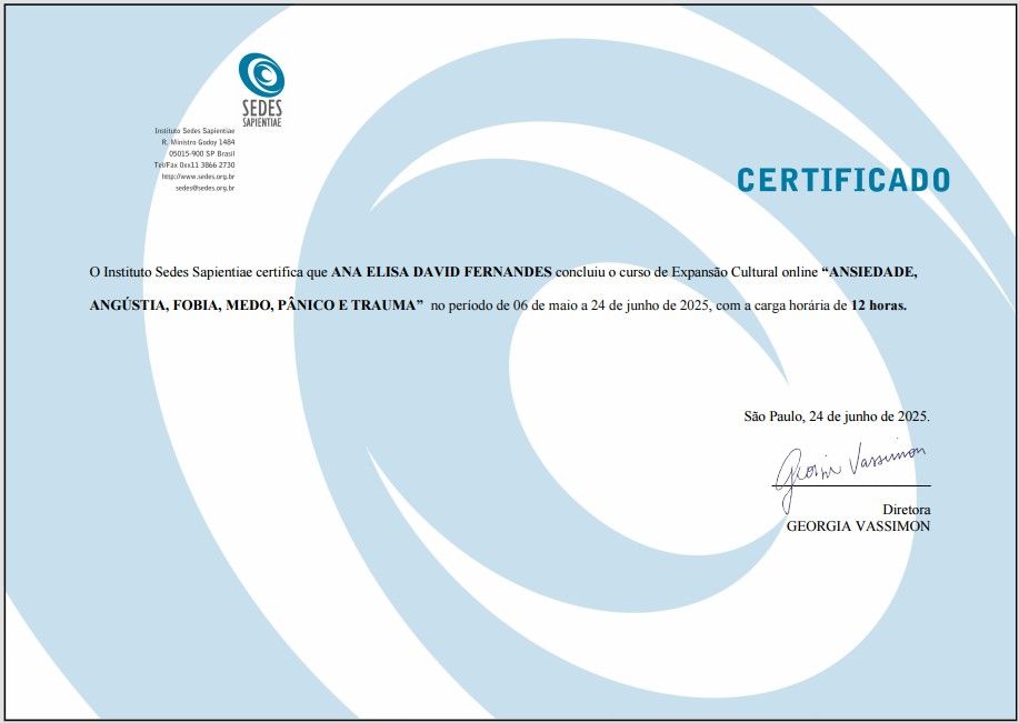 Agendo inicialmente uma primeira consulta para que possamos nos conhecer, conversar sobre seu momento de vida, suas questões e necessidades. Essa primeira conversa é importante para pensarmos juntos nas formas de acompanhamento que façam sentido para você. É o passo inicial de um processo de cuidado com sua saúde emocional, que pode trazer mais equilíbrio, bem-estar e uma melhora real na qualidade de vida - tanto para você quanto para quem convive com você!