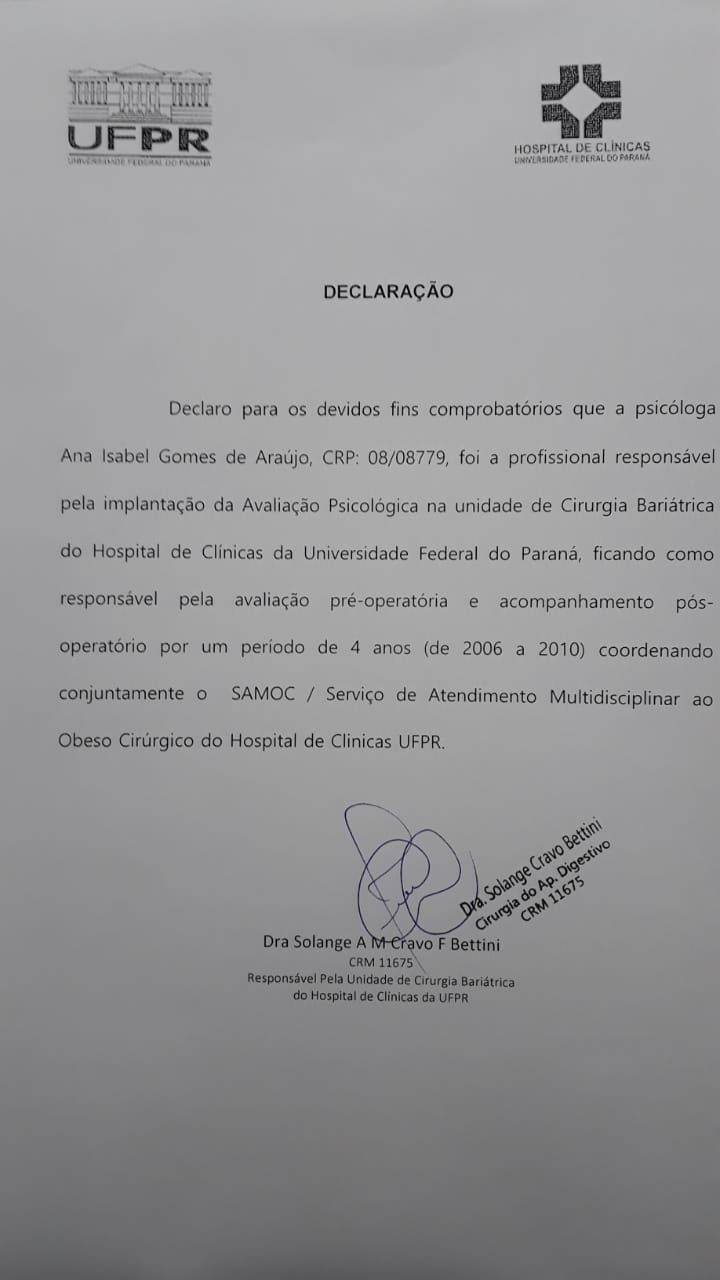Além do atendimento psicoterapêutico individual, realizo avaliação para cirurgia bariátrica e acompanhamento pós cirurgia.