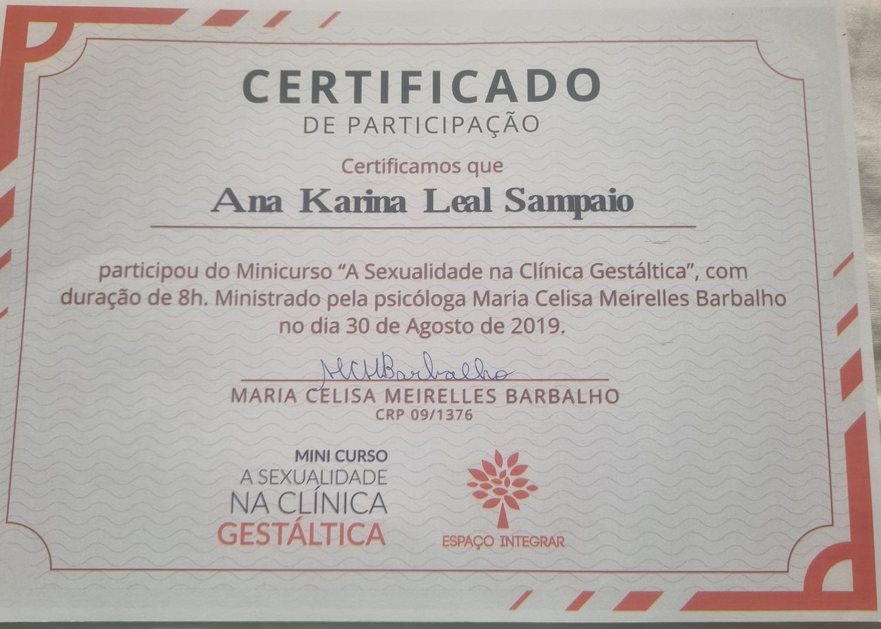 Psicóloga formada a 10 anos e Gestalt Terapeuta há 5 anos.