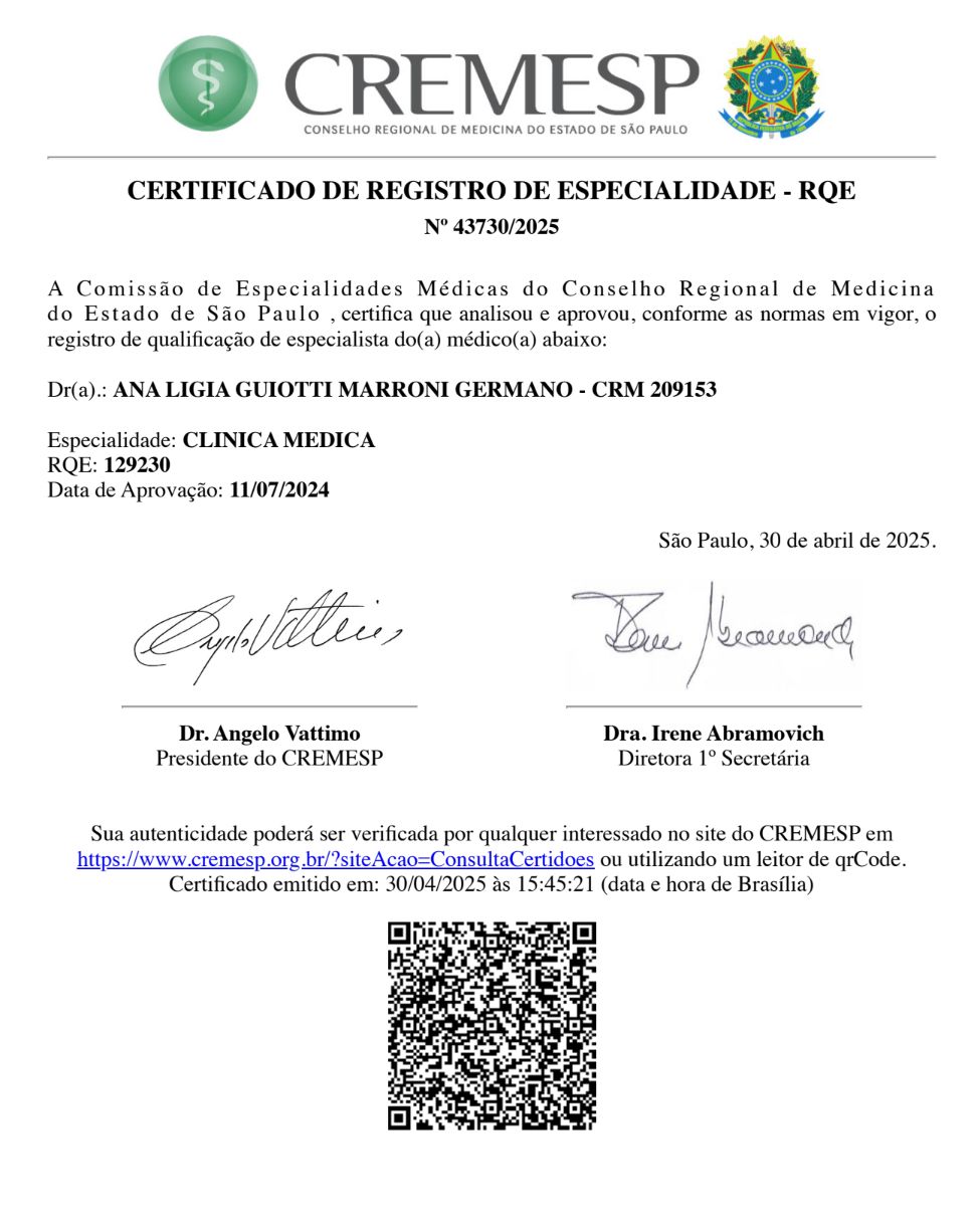 Dra. Ana Ligia realmente tem um grande diferencial entre os outros médicos que ultimamente tenho me consultado, humana, muito preparada com vários qualificações no exterior que faz toda a diferença, além de investigar todo o seu histórico clínico por completo. Recomendo assim com indico.