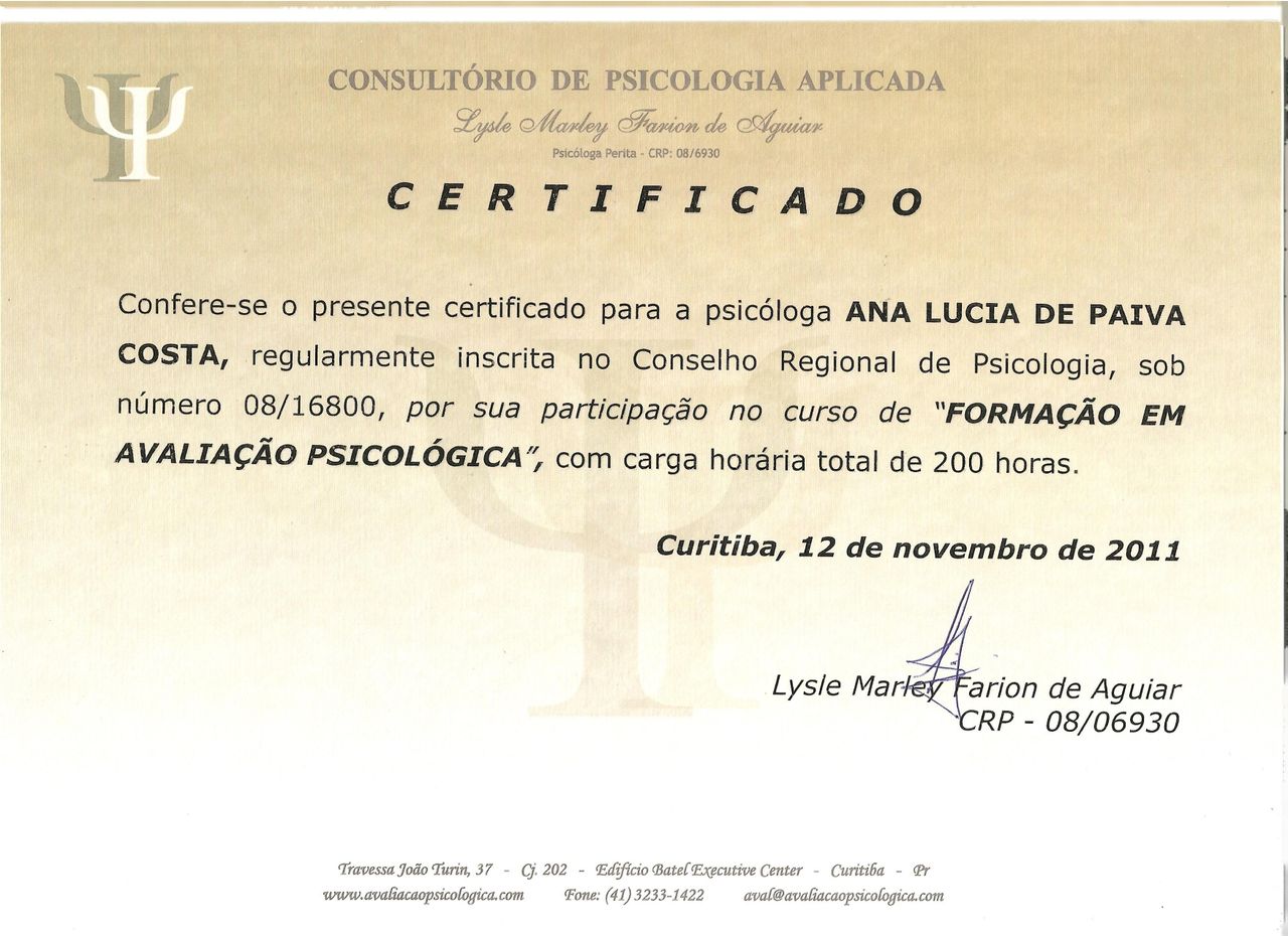 Quais são as principais especialidades de Ana Lúcia de Paiva Costa?Ana Lúcia de Paiva Costa é psicóloga. Te mostramos alguns dos serviços oferecidos pelo especialista graças à sua trajetória e vasta experiência: Terapia Cognitivo Comportamental, Psicoterapia adulto, Primeira consulta psicologia, Processo de avaliação psicológica admissional, Primeira consulta psicológica por convênio, Teleconsulta, Avaliação Psicológica para Vasectomia e Laqueadura, Consulta psicológica do adulto, Consulta de psicologia online, Consulta psicológica por convênio.