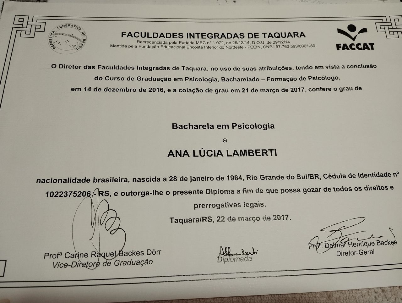 Estou vinculada ao Instituto de Psicologia (Novo Hamburgo), onde realizei minha especialização, participo de cursos, seminários neste local e outros onde sinto necessidade de buscar conhecimentos. Também atendo pacientes deste Instituto, sendo neste momento, atendimento online.