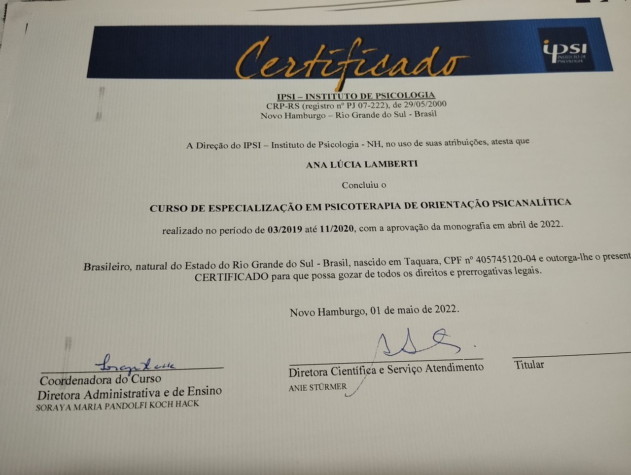 • Ana Lúcia lamberti • Consulta Psicologia •