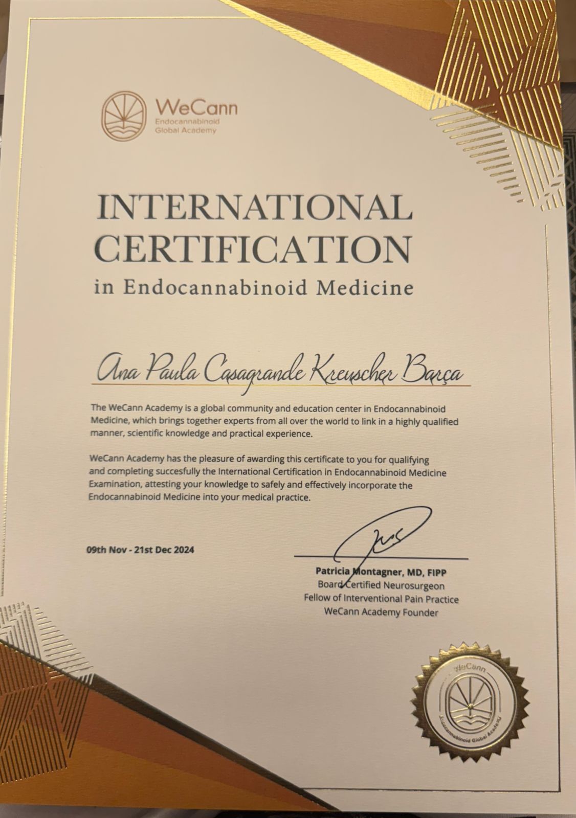 Aprendi que ouvir, orientar e caminhar junto com o paciente e sua família é tão importante quanto qualquer tratamento. Por isso, senti a necessidade de me aprofundar cada vez mais. Fiz especialização em Dor pelo Hospital das Clínicas (USP) e estou finalizando a formação integrativa em Alzheimer. Também busquei uma formação internacional em prescrição de canabinoides, acreditando que cada pessoa merece um cuidado completo, atualizado e humano.