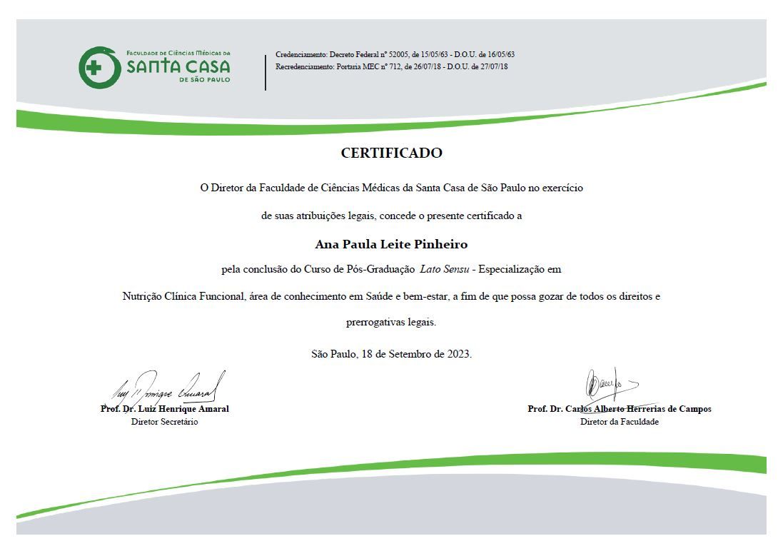 Excelente profissional, tem muito conhecimento e foca especificamente no seu objetivo, sem receitas prontas como os demais nutricionistas. Através da alimentação e suplementação estamos retornando todos os valores alterados nos exames para os valores normais. O que mais gosto é que emagreço comendo tudo que gosto, inclusive jantando hambúrguer toda noite kkk. Eu nunca pensei em fazer acompanhamento nutricional, mas ao ver familiares tendo resultados sem precisar comer "aspargos orgânicos importados da Noruega" resolvi tentar e recomendo a profissional, ela faz a prescrição toda adaptada à sua realidade. Nota 10!!