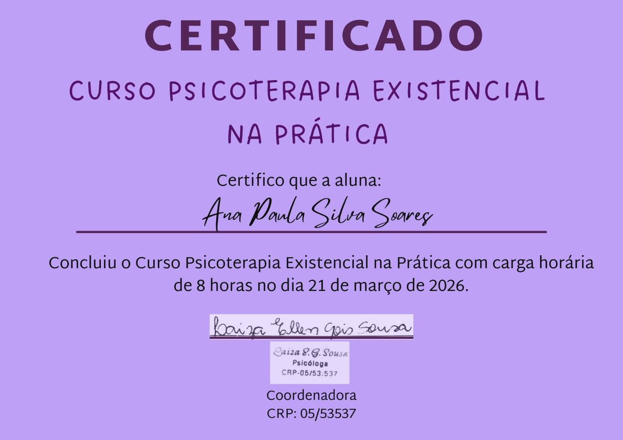 Estarei ao seu lado de forma ativa e empática, apoiando seu processo de autoconhecimento e desenvolvimento pessoal.
