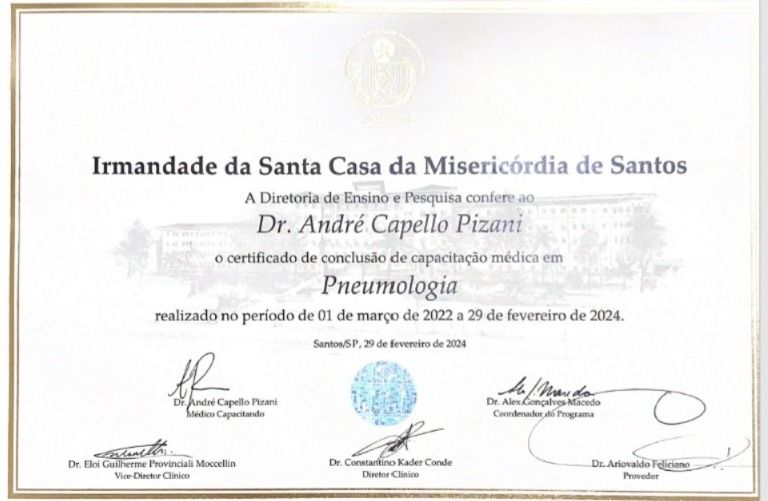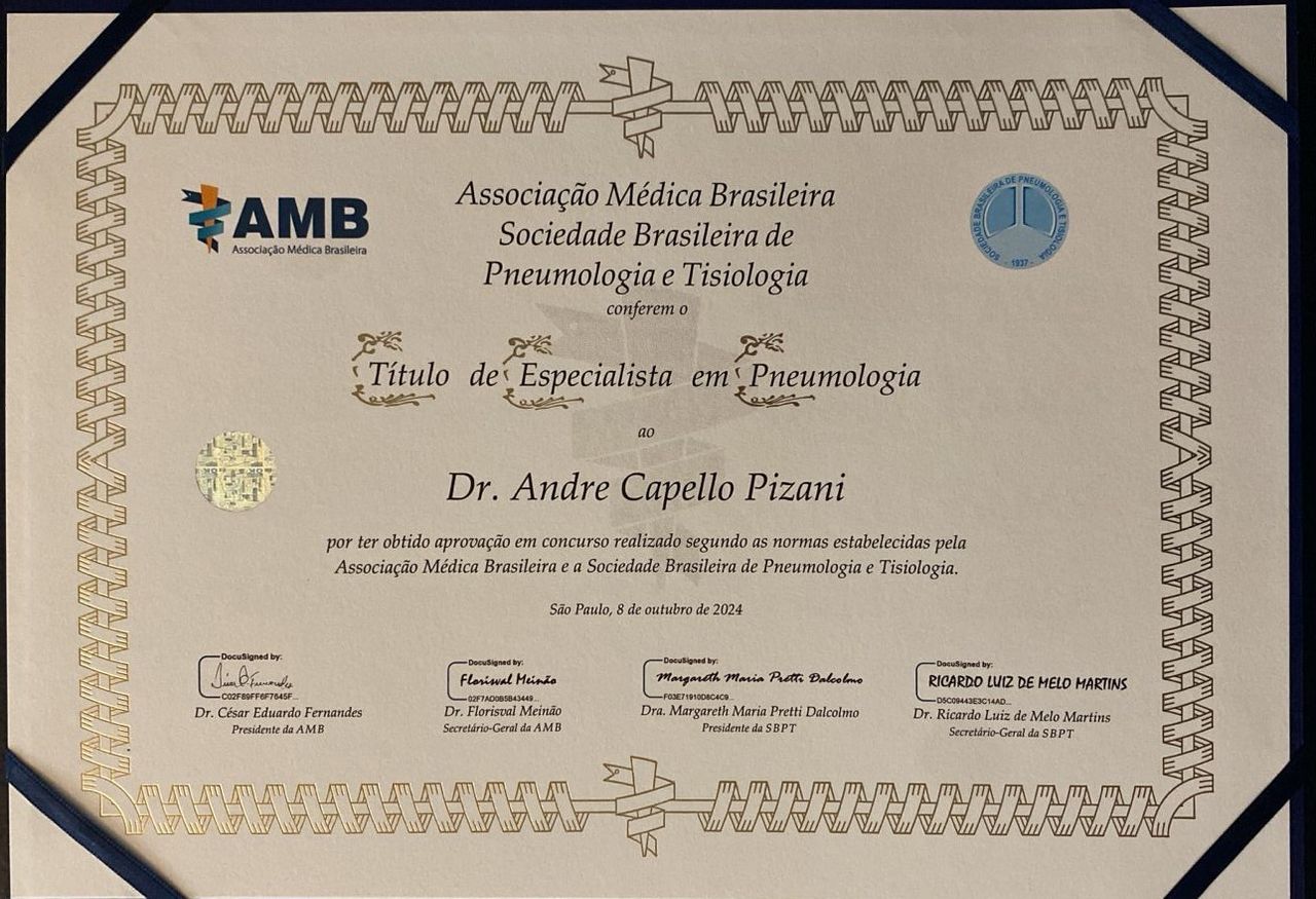 Título de especialista pela Sociedade Brasileira de pneumologia e tisiologia.