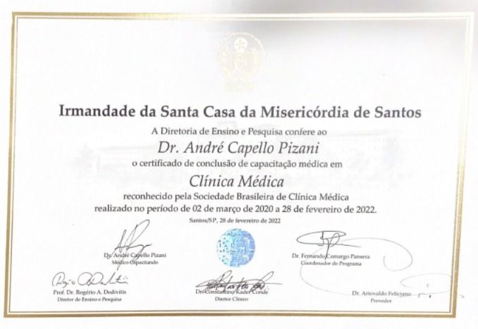 Especialização em clínica médica pela Santa Casa Misericórdia de Santos 2020 a 2022.
