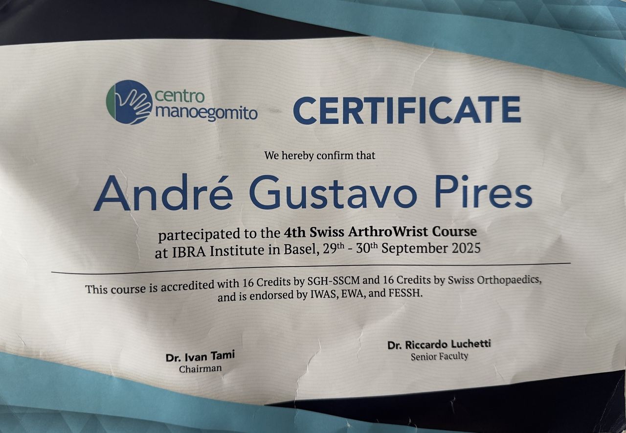 Dr. André Gustavo Pires é médico ortopedista especializado no tratamento clínico e cirúrgico das doenças da mão e do punho. Realizou sua residência médica em Cirurgia da Mão no Hospital de Clínicas da UNICAMP( São Paulo), uma das maiores referências do país. Complementou sua formação com treinamentos avançados na Espanha e na Finlândia, aprofundando seus conhecimentos em técnicas de ponta, como artroscopia e cirurgias minimamente invasivas. Atualmente, é membro Titular da Sociedade Brasileira de Ortopedia e Traumatologia ( SBOT), Sociedade Brasileira de Cirurgia da Mão(SBCM), Sociedade Americana de Cirurgia da Mão ( ASSH) e Sociedade Internacional de Artroscopia do Punho ( IWAS).