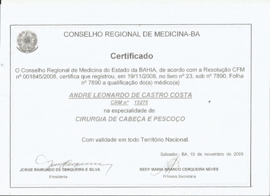 Quais são as principais especialidades de Andre Leonardo de Castro Costa?Andre Leonardo de Castro Costa é cirurgião de cabeça e pescoço. Te mostramos alguns dos serviços oferecidos pelo especialista graças à sua trajetória e vasta experiência: Consulta cirurgia de cabeça e pescoço, Primeira consulta Cirurgia de Cabeça e Pescoço, Retorno de consultas Cirurgia de Cabeça e Pescoço.