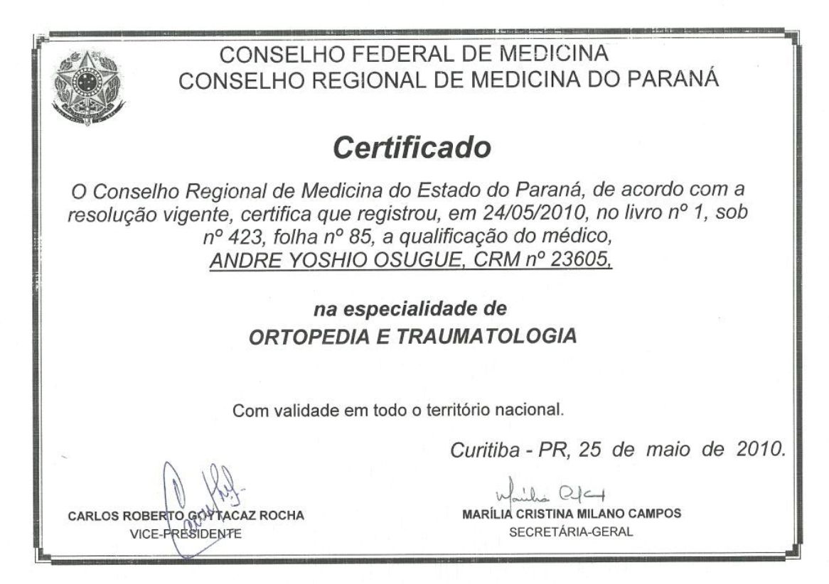 - Ortopedistas - traumatologistas com Sinam em Curitiba